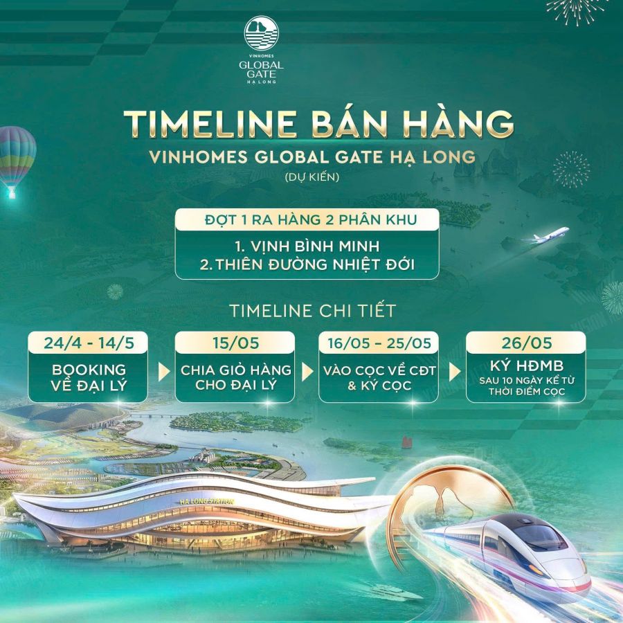 Dự án Khu đô thị phức hợp Hạ Long Xanh Vinhomes Global Gate Hạ Long: Siêu đô thị biển bên Vịnh Kỳ quan Hạ Long Thuộc địa bàn Thị xã Quảng Yên và TP Hạ Long chính thức được khởi công 19/12/2025. Dự án được triển khai trên diện tích 6.206ha với tổng mức đầu tư Khủng nhất từ trước đến nay, lên đến 456,00 tỷ đồng (~ 18 tỷ USD) với đa dạng loại hình sản phẩm ,dự kiến hơn 80.000 sản phẩm thấp tầng và nhiều tòa chung cư, căn hộ cao tầng